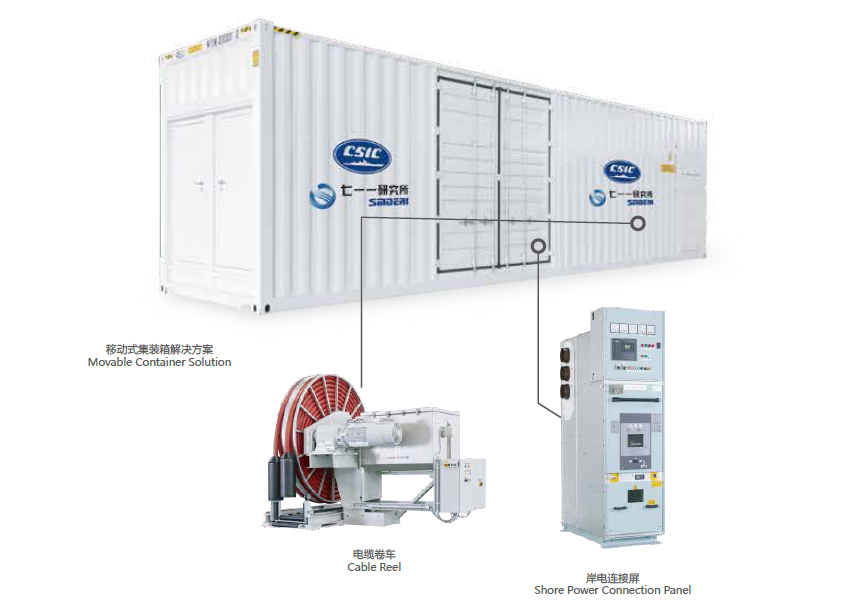 中國船舶重工集團公司第七一一研究所可針對不同船舶提供最合理的、最優化的、最完善的高壓岸電系統技術方案。可實現高壓岸電系統全面的系統集成設計、完整的成套供貨、優良的售后服務,專業的技術咨詢與培訓。集成的產品覆蓋全套高壓岸電系統(包括電纜管理系統、岸電連接屏、岸電接入屏、變壓器等)。功率范圍最高可達7MW,電壓最高可實現15kV。