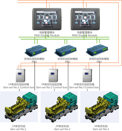 機旁監控箱主要配套柴油機、齒輪箱、CPP等設備,通過標準模塊監控動力設備的運行參數與邏輯控制,通過標準的MODBUS與上層監測進行數據交互。目前主要配套廠家有廣柴、大連北車、杭齒、重齒等廠家。